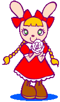 § [캐릭터 코멘트] いつもと路線を変えた衣装で登場のミミちゃん。真っ赤なリボンがよく似合ってるね!バラの花に囲まれたら女の子はいつでも夢見る乙女に変身できるんだって。