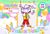 - E10 / N26 / H38 / EX46. '캐릭터로부터 크리에이트! 팝픈 오리지널 악곡 콘테스트(キャラクターからクリエイト!ポップンオリジナル楽曲コンテスト)' 당선작이다. 2017년 4월 27일에 업데이트로 수록되었다.