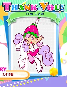 crimm9 3월 31일 : 안나 (Anna) 1. 캐릭터 프로필★ 이름 : 안나 (Anna; アンナ) ★ 생일 : 3월 31일 ○ 성별 : 여성○ 아이콘 : 하트○ 출신지 : 자그마한 거리 小さな街 ○ 취미 : 과자 만들기. 지금은 스콘에 심취해 있어. お菓子作り。今はスコーンに凝ってるの ♡ 좋아하는 것 : 할머님께서 주신, 모자와 구두. おばあさまに頂いた、帽子と靴 × 싫어하는 것 : 무서운 영화. 怖い映画 ○ 등장 팝픈뮤직 카드 일람 [노멀] - ec Vol.3 18번 (13 버전) [레어] - TS Vol.3 3번 "°・ロコの夢はどんないろ?・°" (4번과 짝카드) 2. 캐릭터 소개가. 캐릭터 한 줄 프로필 ▶ "거리에 새로 생긴 관람차. 학급의 여자 아이들 사이에는 둘이서 타면 연인 사이가 될 수 있다는 소문이야. 당신은 그것을 알지 않았으.. 2025. 3. 31. 3월 15일 : 베리 (BERRY) 1. 캐릭터 프로필★ 이름 : 베리 (BERRY; ベリー) ★ 생일 : 3월 15일○ 성별 : 여성○ 출신지 : 딸기 왕국 イチゴの国○ 취미 : 목마 메리에 타기 木馬のメリーに乗ること♡ 좋아하는 것 : 딸기 과자 イチゴのおかし× 싫어하는 것 : 매운 것 辛いもの★ 등장 팝픈뮤직 카드 일람 [노멀] - fantasia Vol.2 26번 (12 버전) [레어] - TS Vol.3 3번 "°・ロコの夢はどんないろ?・°" (4번과 짝카드) - SP Vol.2 13번 "おこさまティータイム" (14번과 짝카드) - LT Vol.1 16번 "リズミンまでちょっとおでかけ" - ec Vol.3 6번 "星降る夜空の音楽隊" - 카드커넥트 Vol.5(解明リドルズ) "おこさまティータイム" 2. 캐릭터 소개가. 캐릭터 한.. 2025. 3. 15. 12월 29일 : 샤를롯 (Charlotte) 1. 캐릭터 프로필★ 이름 : 샤를롯 (Charlotte ; シャルロット) ★ 생일 : 12월 29일 ○ 성별 : 여성○ 출신지 : 프랑스 ○ 취미 : おどって、よろこんでもらうこと ♡ 좋아하는 것 : 주인님, 깨끗이 청소해주시는 아주머님 × 싫어하는 것 : 없습니다 ○ 등장 팝픈 카드 : [노멀] SP Vol.1 19번 (14 버전), ec Vol.1 49번 (change 카드) [레어] TS Vol.3 4번 "°・タタンの夢はどんなあじ?・°" (3번과 짝카드) / LT Vol.1 12번 "ああ、胸が…高鳴る…高鳴る…!" 2. 캐릭터 소개가. 캐릭터 한 줄 프로필 § 上手に踊ったら喜んでくれるの。笑ってくれるの。だから私は踊るのがだいすきよ。 (14 FEVER! 캐릭터 프로필) § たくさんの素敵なドレスと音楽、.. 2024. 12. 29. 12월 12일 : 시엘 (ciel) 1. 캐릭터 프로필★ 이름 : 시엘 (ciel; シエル) ★ 생일 : 12월 12일 ○ 성별 : 여성○ 출신지 : 구름 위 ○ 취미 : 그네, 낮잠 ♡ 좋아하는 것 : 테루테루 군과 노는 것 × 싫어하는 것 : 싸울 때의 테루테루 군. 금방 날씨를 흐리게 하니까. ○ 등장 팝픈뮤직 카드 일람 [노멀] - SP Vol.2 37번 (SP 버전) [레어] - SP Vol.1 13번 "あめあがりかえりみち" - ec Vol.2 6번 "* welcome to Spring Park *" 2. 캐릭터 소개가. 캐릭터 한 줄 프로필 ▶ "구름 위에서, 바람을 타고 한가로이 느긋하게, 둘은 단짝. 쭈욱 여행을 계속 하고 있으면, 이따금 다투기도 해버리긴 하지만요." くものうえ、風にのってのんびりゆったり、ふたりは仲良し。.. 2024. 12. 12. 11월 5일 : 타탄 (Tatin) 1. 캐릭터 프로필★ 이름 : 타탄 (Tatin; タタン) ★ 생일 : 11월 5일○ 성별 : 여성○ 출신지 : 사과의 나라 ○ 취미 : 공기놀이 ♡ 좋아하는 것 : 태양빛 × 싫어하는 것 : 사과벌레 ○ 등장 팝픈뮤직 카드 일람 [노멀] - fantasia Vol.2 40번 (17 버전) [레어] - TS Vol.2 14번 "春なんです" (디자이너 shio / 카드커넥트 Vol.2(peace)에서 복각) - TS Vol.3 4번 "°・タタンの夢はどんなあじ?・°" (3번과 세트 카드 / 디자이너 ちっひ / 카드커넥트 Vol.13(UniLab)에서 복각) - LT Vol.1 5번 "ほら、雨がやんだよ" (디자이너 piyo-ko) - LT Vol.2 11번 "あつまれ!ピンクっ子!" (디자이너 ナツ .. 2024. 11. 5. 10월 17일 : 로자리 (Rosalie) 1. 캐릭터 프로필 ★ 이름 : 로자리 (Rosalie ; ロザリー) ★ 생일 : 10월 17일 ○ 성별 : 여성 ○ 출신지 : 어두운 숲 깊은 곳 黒い森の奥深く ○ 취미 : 요리와 호수에 비치는 자신과 춤추는 것. 언젠간 파티에 가고 싶다구. お料理と湖に映った自分とダンスすること。いつかパーティーに行ってみたいの ♡ 좋아하는 것 : 친구…아직 없어 お友達・・・まだいないの × 싫어하는 것 : 쥐 ネズミ ○ 등장 팝픈뮤직 카드 일람 [노멀] - TS Vol.2 46번 (16 버전 / 카드커넥트 Vol.11(UniLab)에서 복각) [레어] - TS Vol.3 4번 "°・タタンの夢はどんなあじ?・°" (3번과 짝카드) - SP Vol.1 16번 "2013ねん☆カモ~ン" - ec Vol.2 6번 "* welc.. 2024. 10. 17. 10월 1일 : 닌진 (にんじん) 1. 캐릭터 프로필 ★ 이름 : 닌진 (にんじん ; Ninjin)★ 축일 : 10월 1일 [생일 표기는 9월 31일] ○ 성별 : 여성○ 아이콘 : 꽃, 물음표○ 출신지 : 파노라마 섬 パノラマ島○ 취미 : 인간 관찰 にんげんかんさつ♡ 좋아하는 것 : 뛰어난 사람들 すぐれたひとたち× 싫어하는 것 : 모자란 사람들 おとったひとたち○ 등장 팝픈뮤직 카드 일람 [노멀] - fantasia Vol.2 55번 (20 버전 / 카드커넥트 Vol.12(UniLab)에서 복각) - 카드커넥트 Vol.10(UniLab) (해명리들즈 버전) [레어] - fantasia Vol.1 13번 "くりむ童話のはじまりはじまり~" (카드커넥트 Vol.3(peace)에서 복각 / 디자이너 shio) - LT Vol.3 4번 "ド.. 2024. 10. 1. 1월 4일 : 로코 (ROCO) 1. 캐릭터 프로필★ 이름 : 로코 (ロコ ; ROCO) ★ 생일 : 1월 4일 ○ 성별 : 여성○ 출신지 : 플레